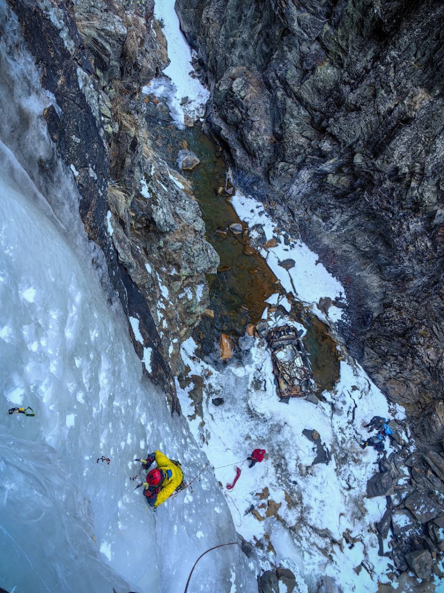 Первый: занятия по совершенствованию техники лазания по льду с верхней страховкой