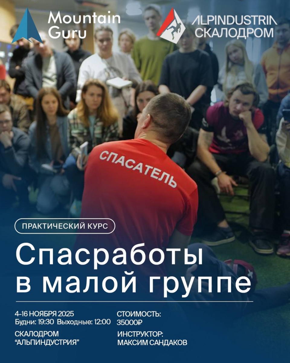 На скалодроме АльпИндустрия при поддержке школы альпинизма MountainGuru, пройдёт объемный курс по проведению спасработ, после прохождения которого вы научитесь оказывать первую помощь, транспортировать пострадавшего с помощью подручных средств, а также организовывать и принимать участие в спасработах в малой группе.
