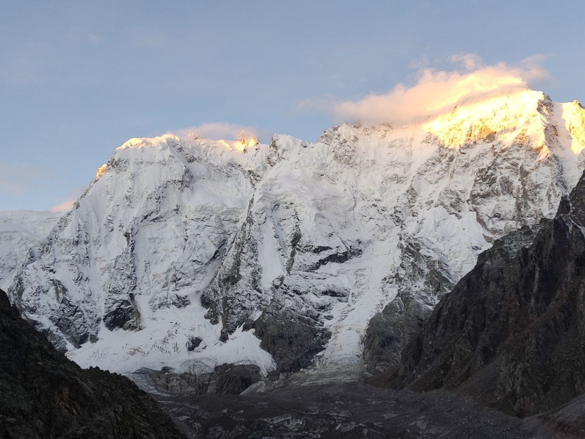 Высота была, мучала, акклиматизировала, отпустила. Учились лазать лед и ходили маршруты под руководством человека с мировым именем (Сергей Харитонович Тарасов). С погодой повезло, устали, упахались, чему-то научились, прошли. Никто не жумарил, все честно лезли.